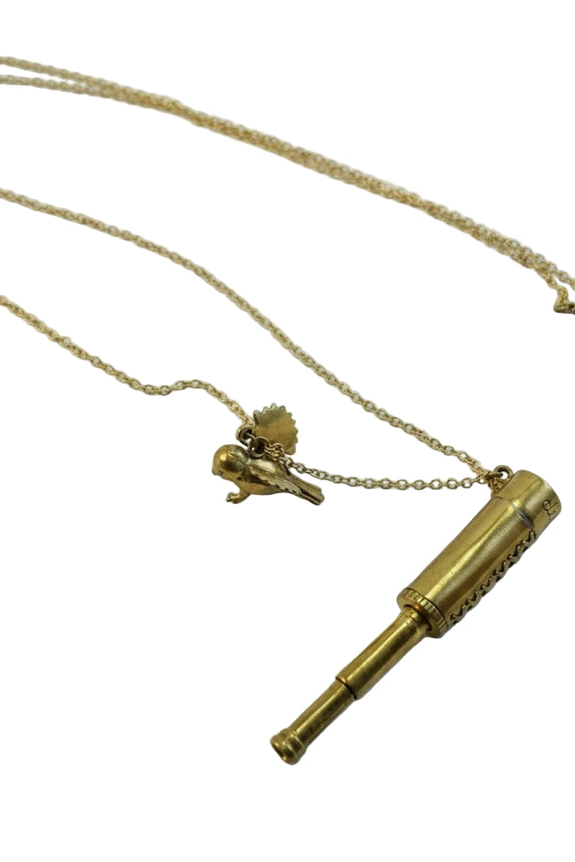 El Collar Catalejo y Pájaro Dorado celebra el espíritu aventurero y la libertad interior. Su diseño une dos elementos llenos de simbolismo: el catalejo, que invita a mirar más allá del horizonte, y el pequeño pájaro, símbolo de ligereza y esperanza.