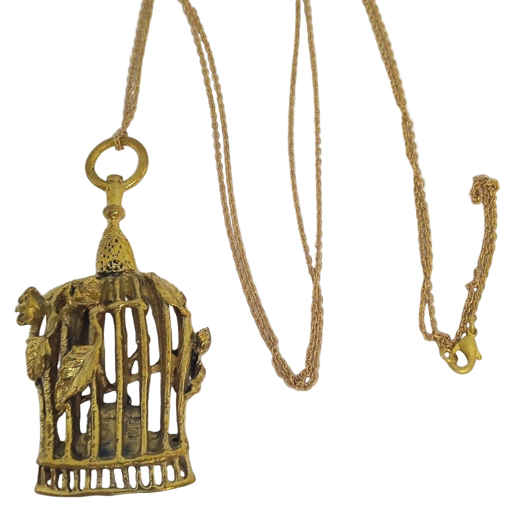 Este collar dorado con colgante en forma de jaula vacía es una joya cargada de simbolismo y belleza artesanal. La jaula, rodeada de delicadas ramas y hojas, representa la libertad interior y el poder de lo natural que crece incluso fuera de los límites. Su diseño detallado y poético convierte esta pieza en una declaración de estilo y significado, perfecta para mujeres que valoran la autenticidad y la expresión personal.
