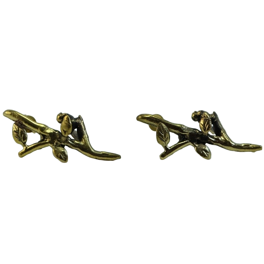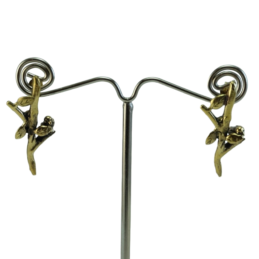 Pendientes con diseño orgánico de rama y hojas con pájaro en tono dorado envejecido. Inspirados en la naturaleza, evocan equilibrio, crecimiento y elegancia natural. Su relieve detallado y forma asimétrica aportan un toque artesanal y sofisticado, perfectos para un estilo boho chic o para acompañar looks minimalistas con personalidad.